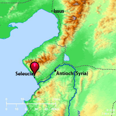 Atlas ![]() Seleucia and surrounding area Maps Created using Biblemapper 3.0 Additional data from OpenBible.info You are free to use up to 50 Biblos coprighted maps (small or large) for your website or presentation. Please credit Biblos.com. Occurrences Acts 13:4 So, being sent out by the Holy Spirit, they went down to Seleucia. From there they sailed to Cyprus.Encyclopedia SELEUCIAse-lu'-shi-a (Seleukia): The seaport of Antioch from which it is 16 miles distant. It is situated 5 miles North of the mouth of the Orontes, in the northwestern corner of a fruitful plain at the base of Mt. Rhosus or Pieria, the modern Jebel Musa, a spur of the Amanus Range. Built by Seleucus Nicator (died 280 B.C.) it was one of the Syrian Tetrapolis, the others being Apameia, Laodicea and Antioch. The city was protected by nature on the mountain side, and, being strongly fortified on the South and West, was considered invulnerable and the key to Syria (Strabo 751; Polyb. v.58). It was taken, however, by Ptolemy Euergetes (1 Maccabees 11:8) and remained in his family till 219 B.C., when it was recovered for the Seleucids by Antiochus the Great, who then richly adorned it. Captured again by Ptolemy Philometor in 146 B.C., it remained for a short time in the hands of the Egyptians. Pompey made it a free city in 64 B.C. in return for its energy in resisting Tigranes (Pliny, NH, v.18), and it was then greatly improved by the Romans, so that in the 1st century A.D. it was in a most flourishing condition. SELEUCIA, the seaport of Antioch in Syria, from which it is 16 ms. distant. It is now a small village with ruins and has a large inner harbor with a narrow entrance from the Mediterranean. See Map No. 7. Strong's Greek G4581: SeleukeiaSeleucia, a city of Syria |
