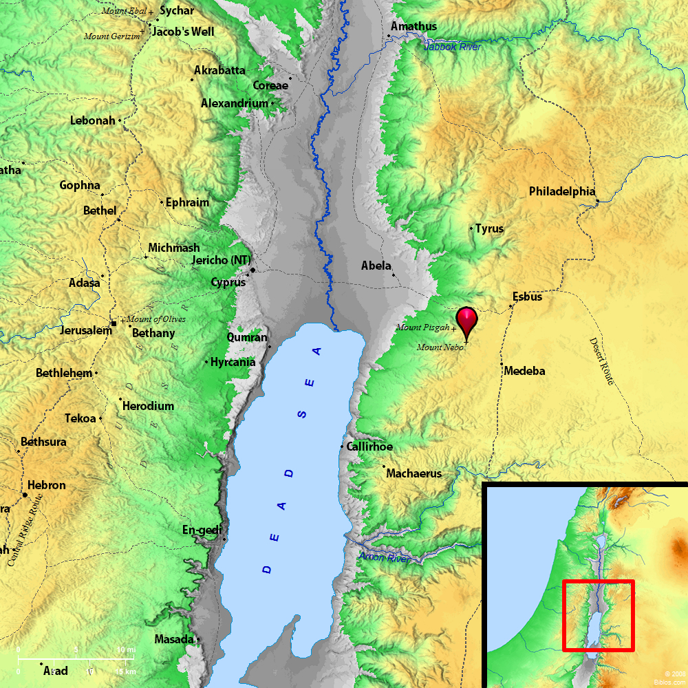 Atlas ![]() Abarim (Mount Nebo) and surrounding region Maps Created using Biblemapper 3.0 Additional data from OpenBible.info You are free to use up to 50 Biblos coprighted maps (small or large) for your website or presentation. Please credit Biblos.com. Occurrences Numbers 27:12 Yahweh said to Moses, "Go up into this mountain of Abarim, and see the land which I have given to the children of Israel.Numbers 27:14 because you rebelled against my word in the wilderness of Zin, in the strife of the congregation, to sanctify me at the waters before their eyes." (These are the waters of Meribah of Kadesh in the wilderness of Zin.) Numbers 33:47 They traveled from Almon Diblathaim, and encamped in the mountains of Abarim, before Nebo. Numbers 33:48 They traveled from the mountains of Abarim, and encamped in the plains of Moab by the Jordan at Jericho. Deuteronomy 32:49 "Go up into this mountain of Abarim, to Mount Nebo, which is in the land of Moab, that is over against Jericho; and see the land of Canaan, which I give to the children of Israel for a possession; Jeremiah 22:20 Go up to Lebanon, and cry; and lift up your voice in Bashan, and cry from Abarim; for all your lovers are destroyed. Encyclopedia ABARIMab'-a-rim, a-ba'-rim (`abharim): The stem idea is that of going across a space or a dividing line, or for example a river. It is the same stem that appears in the familiar phrase "beyond Jordan," used to denote the region East of the Jordan, and Hellenized in the name Peraea. This fact affords the most natural explanation of the phrases `the mountains of the Abarim' (Numbers 33:47, 48); `this mountain-country of the Abarim' (Numbers 27:12 Deuteronomy 32:49); Iye-abarim, which means "Heaps of the Abarim," or "Mounds of the Abarim" (Numbers 21:11; Numbers 33:44). In Numbers 33:45 this station is called simply Iyim, "Mounds." It is to be distinguished from the place of the same name in southern Judah (Joshua 15:29). The name Abarim, without the article, occurs in Jeremiah (Jeremiah 22:20 the Revised Version (British and American), where the King James Version translates "the passages"), where it seems to be the name of a region, on the same footing with the names Lebanon and Bashan, doubtless the region referred to in Numbers and Deuteronomy. There is no reason for changing the vowels in Ezekiel 39:11, in order to make that another occurrence of the same name. AB'ARIM, mts., e. of the Dead Sea and opposite Jericho. They descend from that high table land e. of the Jordan and are not strictly mountains but sloping cliffs overlooking the valley of the Jordan and the Dead Sea. They are about 3000 ft. above the level of the Mediterranean. Abarim means "passages" and it was only by these "passages" that the Israelites could descend to the plains of Jericho. Strong's Hebrew H5682: Abarim"regions beyond," a mountainous region North of the Dead Sea |