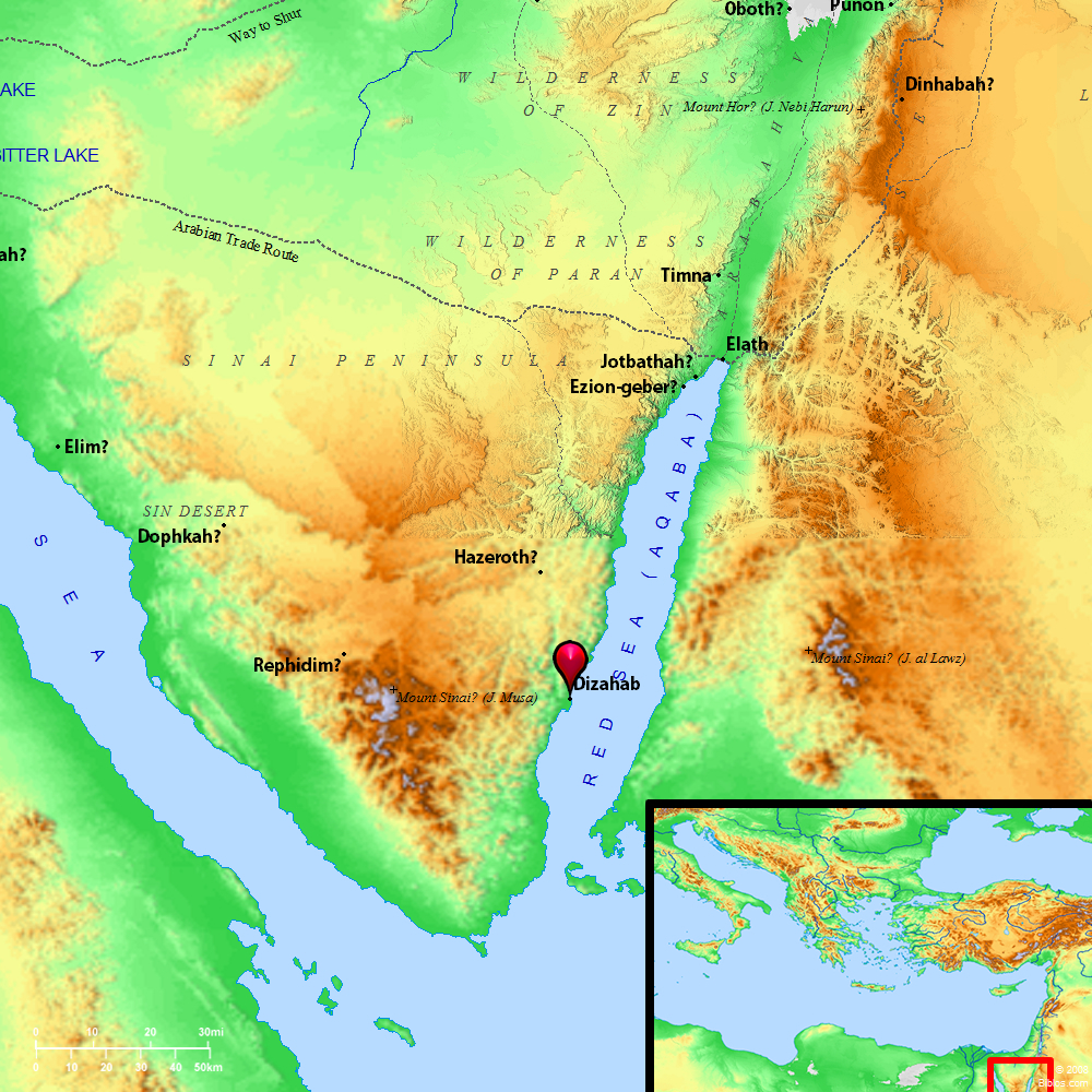 The name occurs in a list apparently intended to fix definitely the situation of the camp of Israel in the plains of Moab (Deuteronomy 1:1). No place in the region has been found with a name suggesting this; and there is no other clue to its identification. Some names in the list are like those of stations earlier in the wanderings. Thinking that one of these may be intended Burckhardt suggested Mina edh-Dhahab, a boat harbor between Ras Mohammad and `Aqaba. Cheyne gets over the difficulty by accepting a suggestion of Sayee that Di-zahab corresponds to Me-zahab (Genesis 36:39); this latter he then transforms into Mitzraim, and identifies it with the North Arabian Mucri (Encyclopedia Biblica, under the word). The changes, however, seem greater than can be justified.
